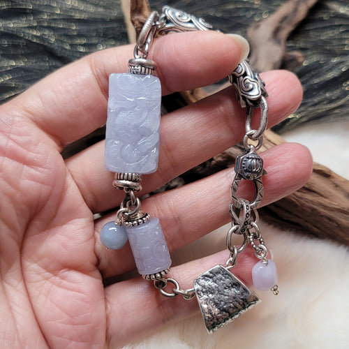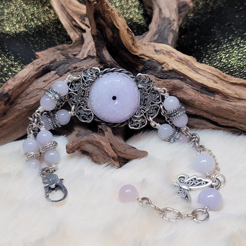 0623 緬甸A貨紫翡龍鳳牌銀手鏈