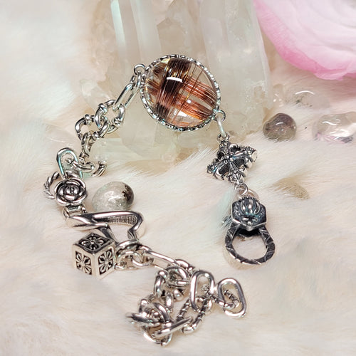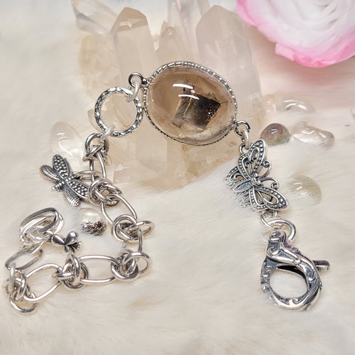 0678 茶晶黃銅礦S925純銀設計款手鏈