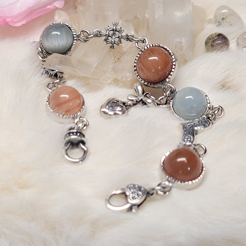 0683 粉橙藍兔毛S925純銀設計款手鏈