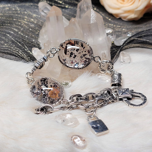 0672 雲母黑超七共生礦2粒S925純銀設計款手鏈