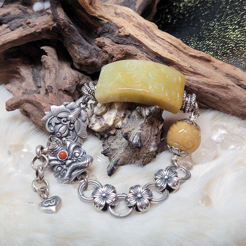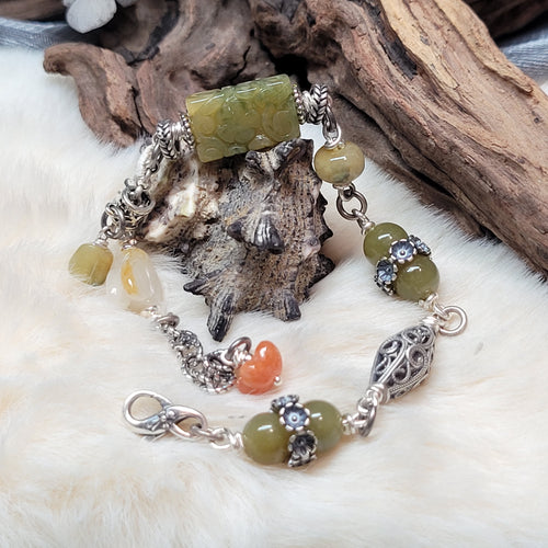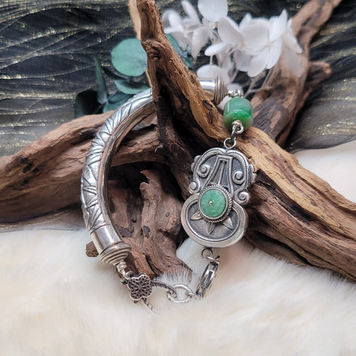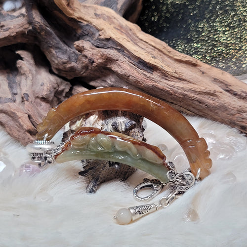 1240 A貨翡翠秋香绿銀半镯手鏈