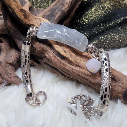 1229 A貨翡翠紫飘花手牌銀手鏈