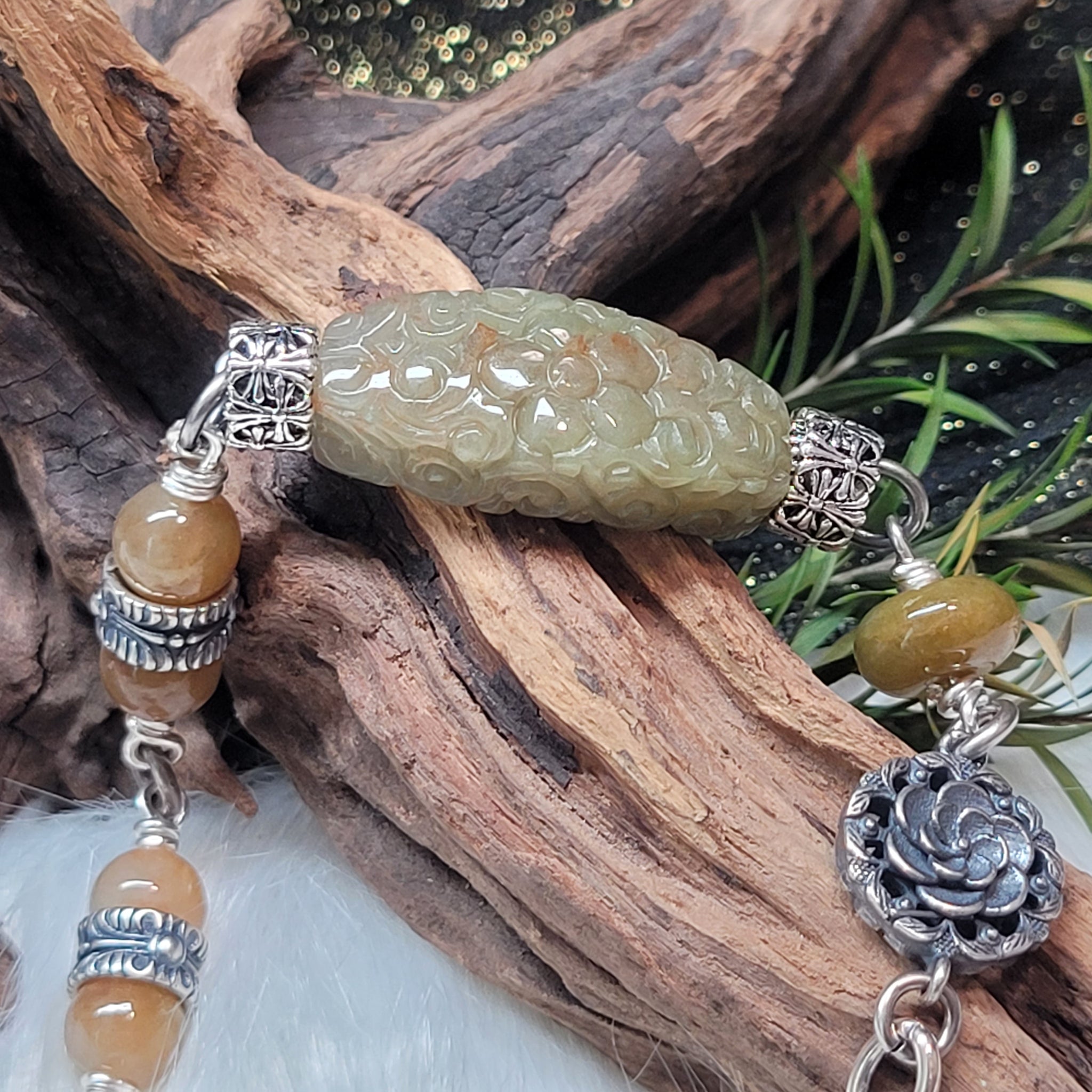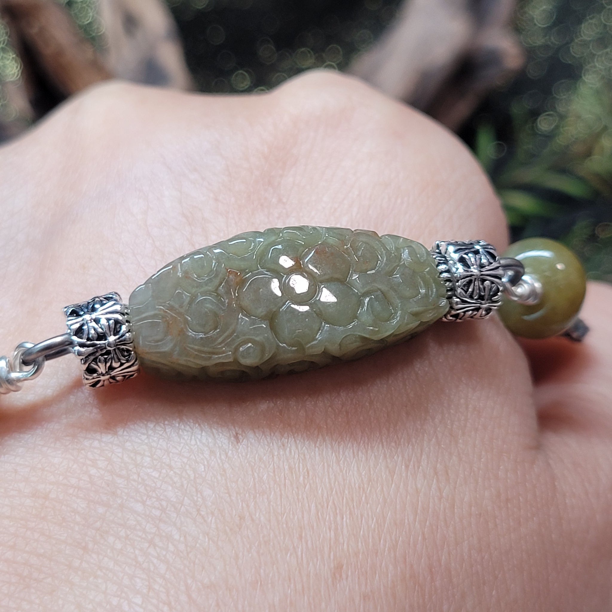 1222 A貨翡翠秋香綠灑金銀手鏈