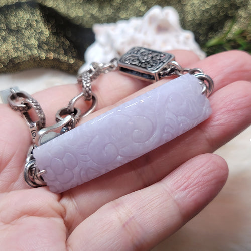 1203 A貨翡翠三彩鏤空雕刻花牌手串