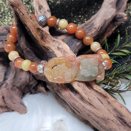 1213 A貨翡翠黃九尾手牌銀手鏈