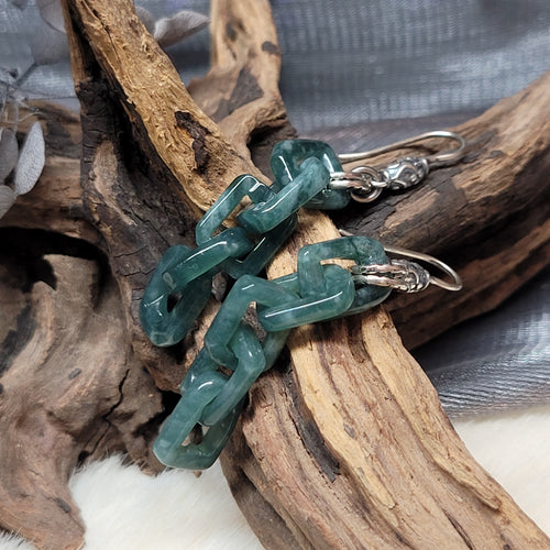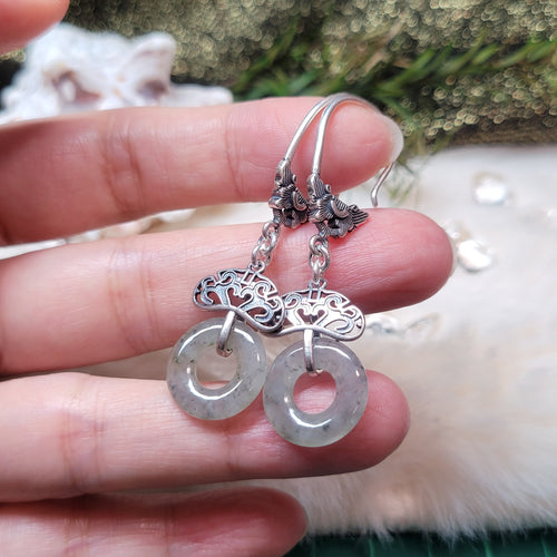 1304 天然A貨翡翠烏雞帶綠甜甜圈925銀耳飾