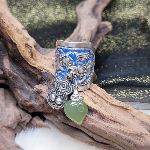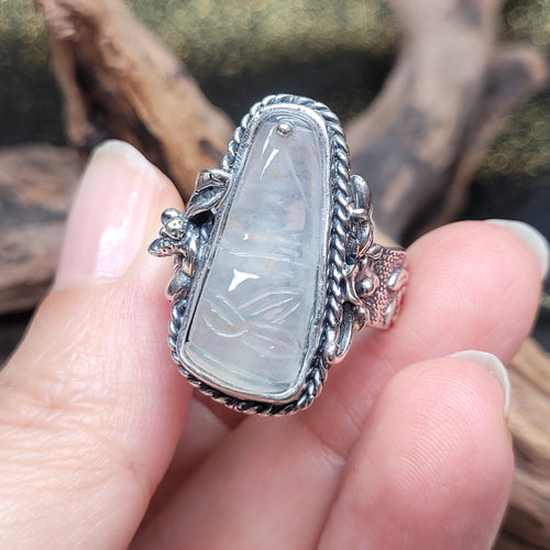 1301 A貨翡翠高冰竹節定製款925銀戒指