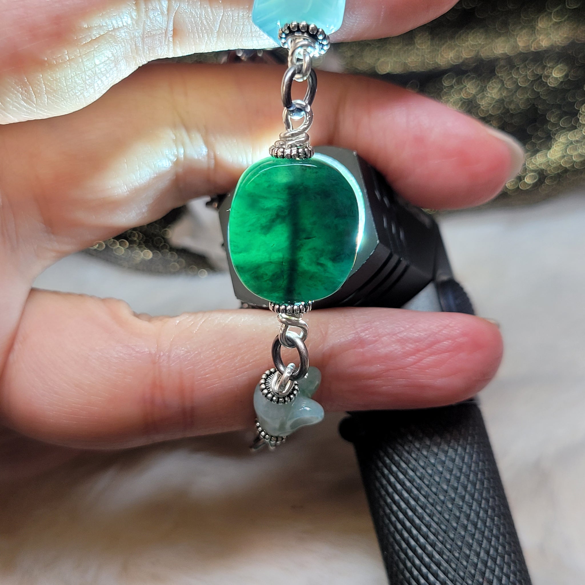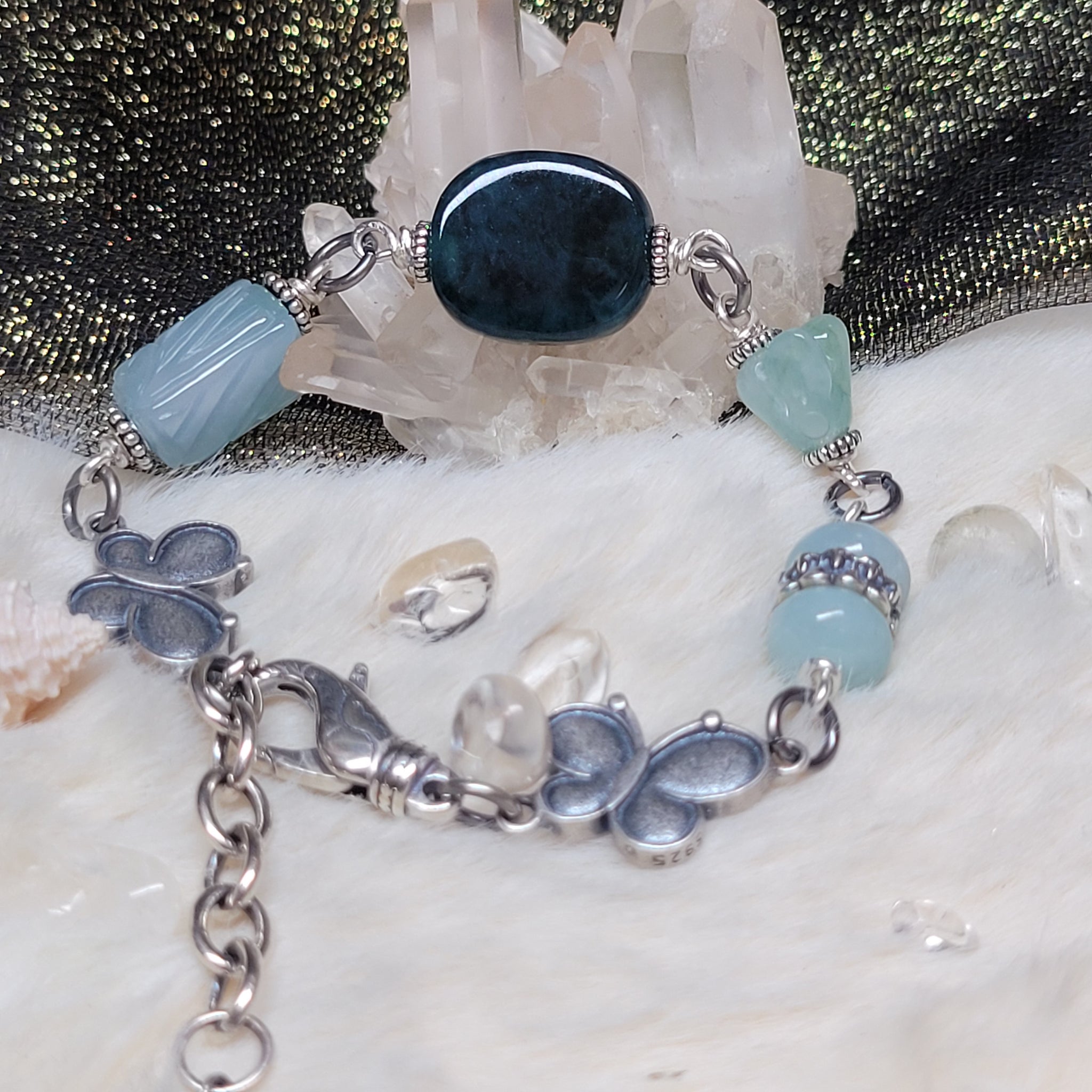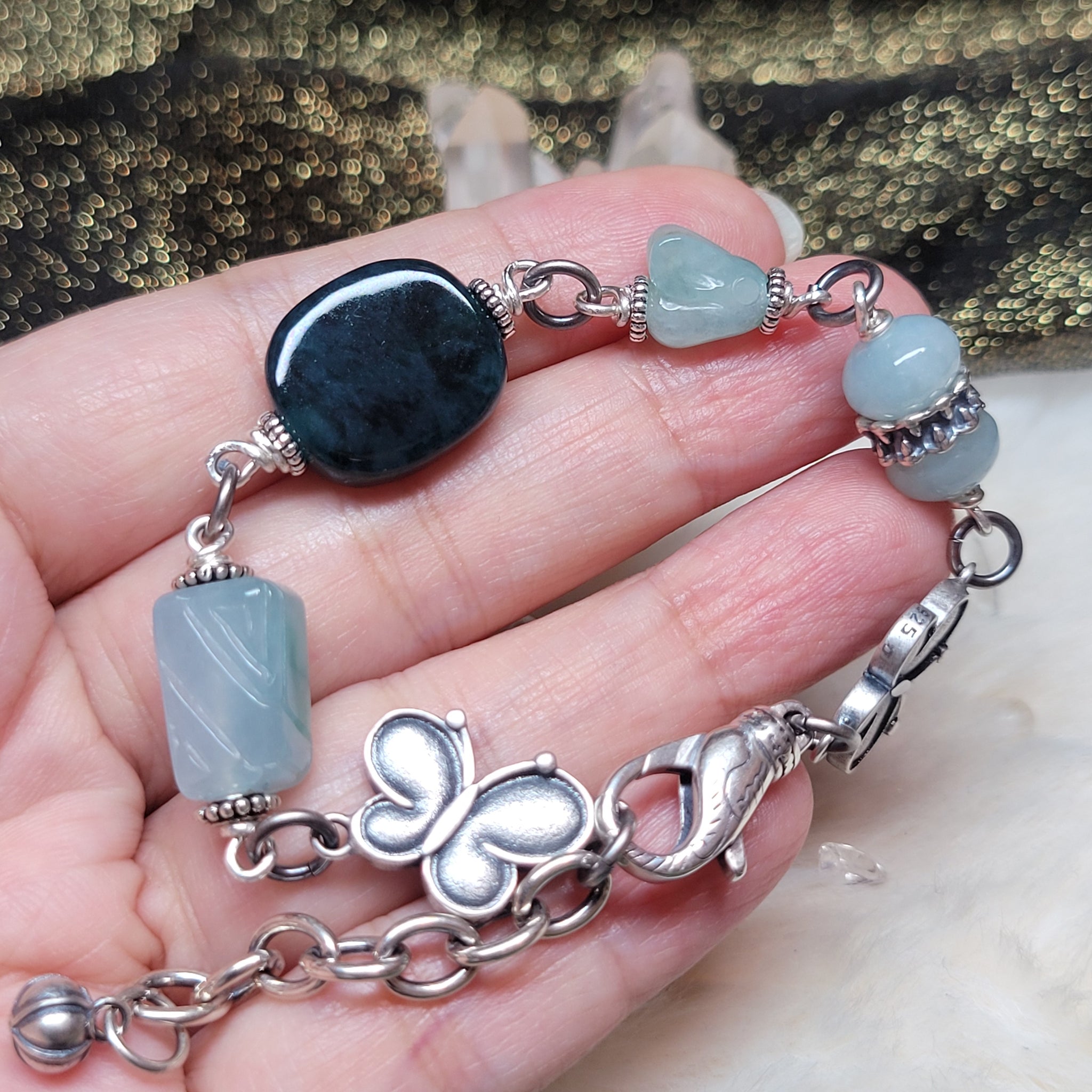 1212 A貨翡翠老蓝水銀手鏈