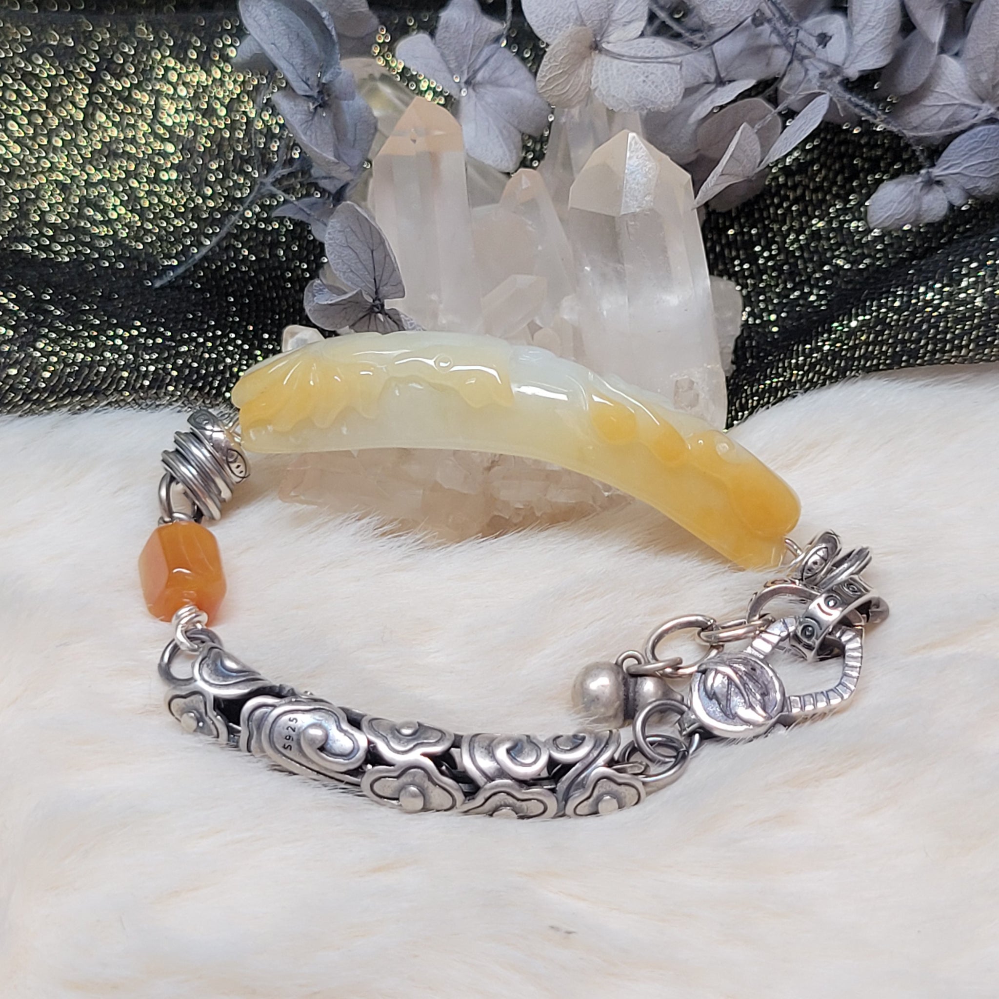 1213 A貨翡翠黃九尾手牌銀手鏈