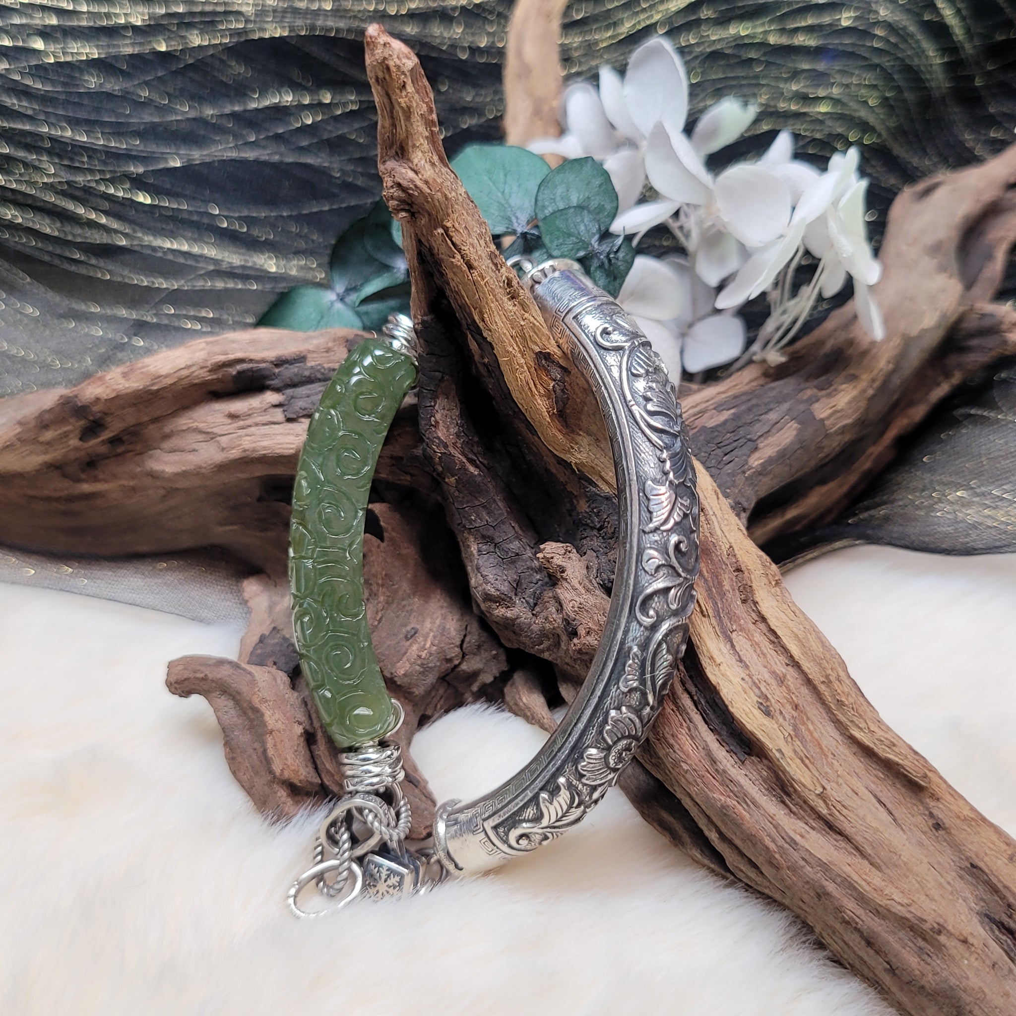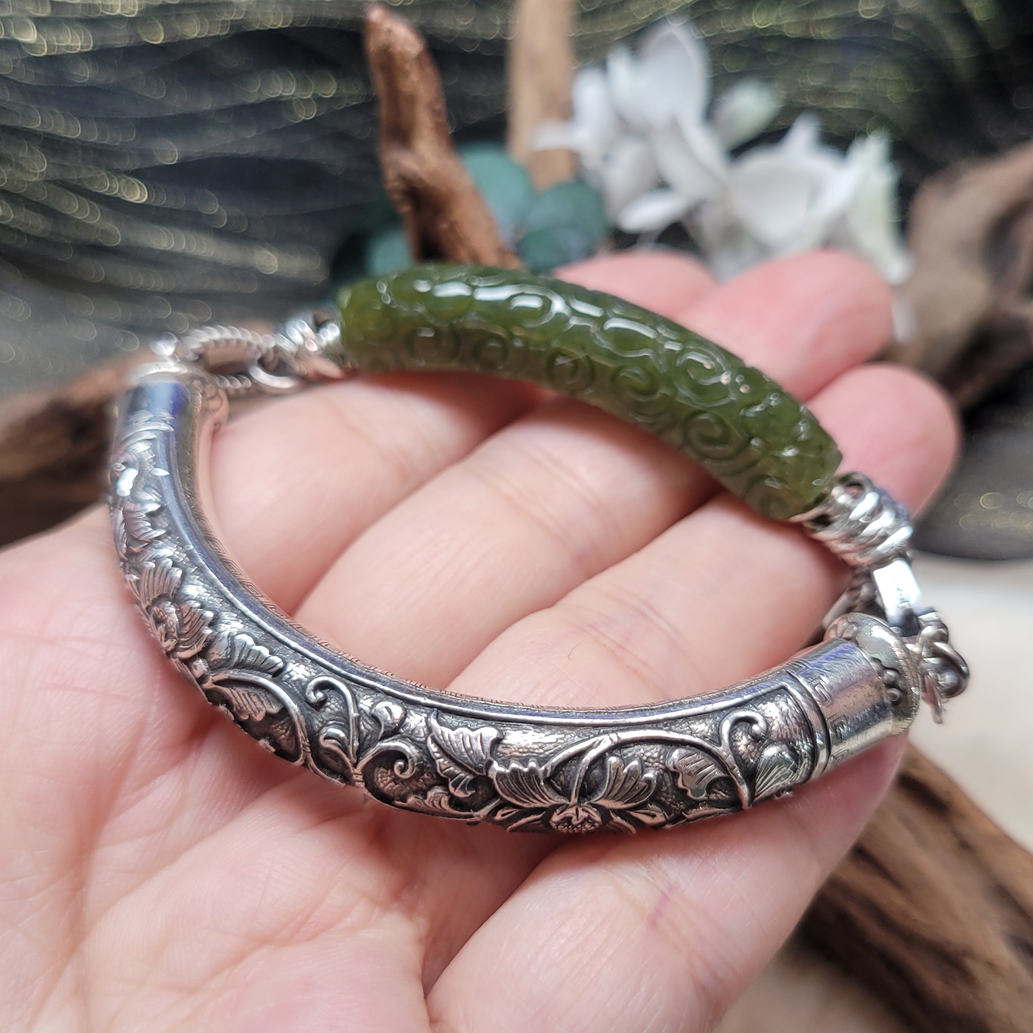 1240 A貨翡翠秋香绿銀半镯手鏈