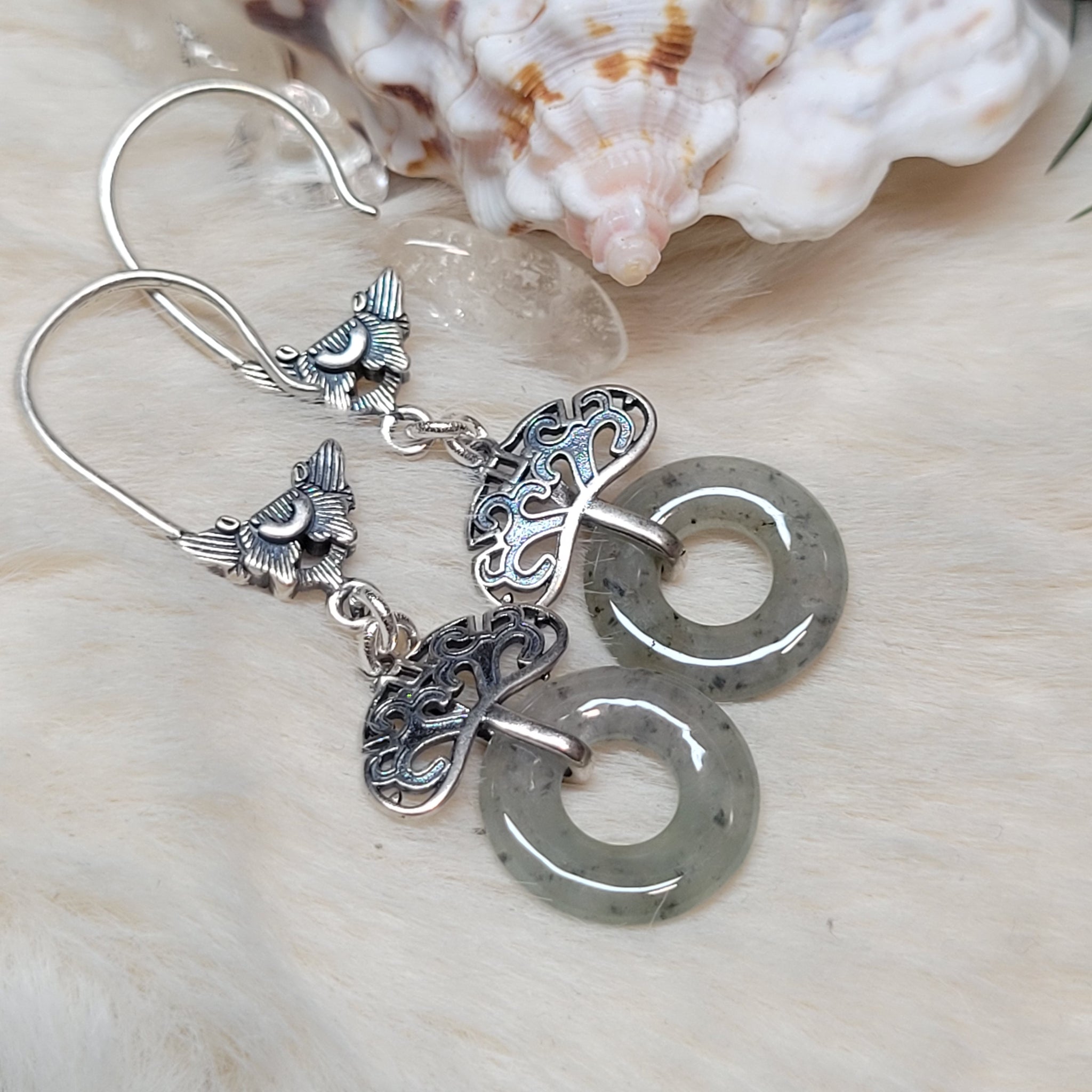 1304 天然A貨翡翠烏雞帶綠甜甜圈925銀耳飾