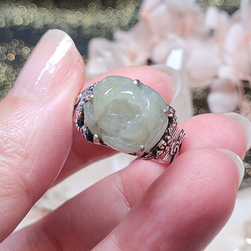 1289 A貨翡翠冰黃花花定製款925銀戒指