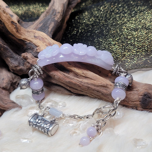 1224 A貨翡翠紫花手牌銀手鏈