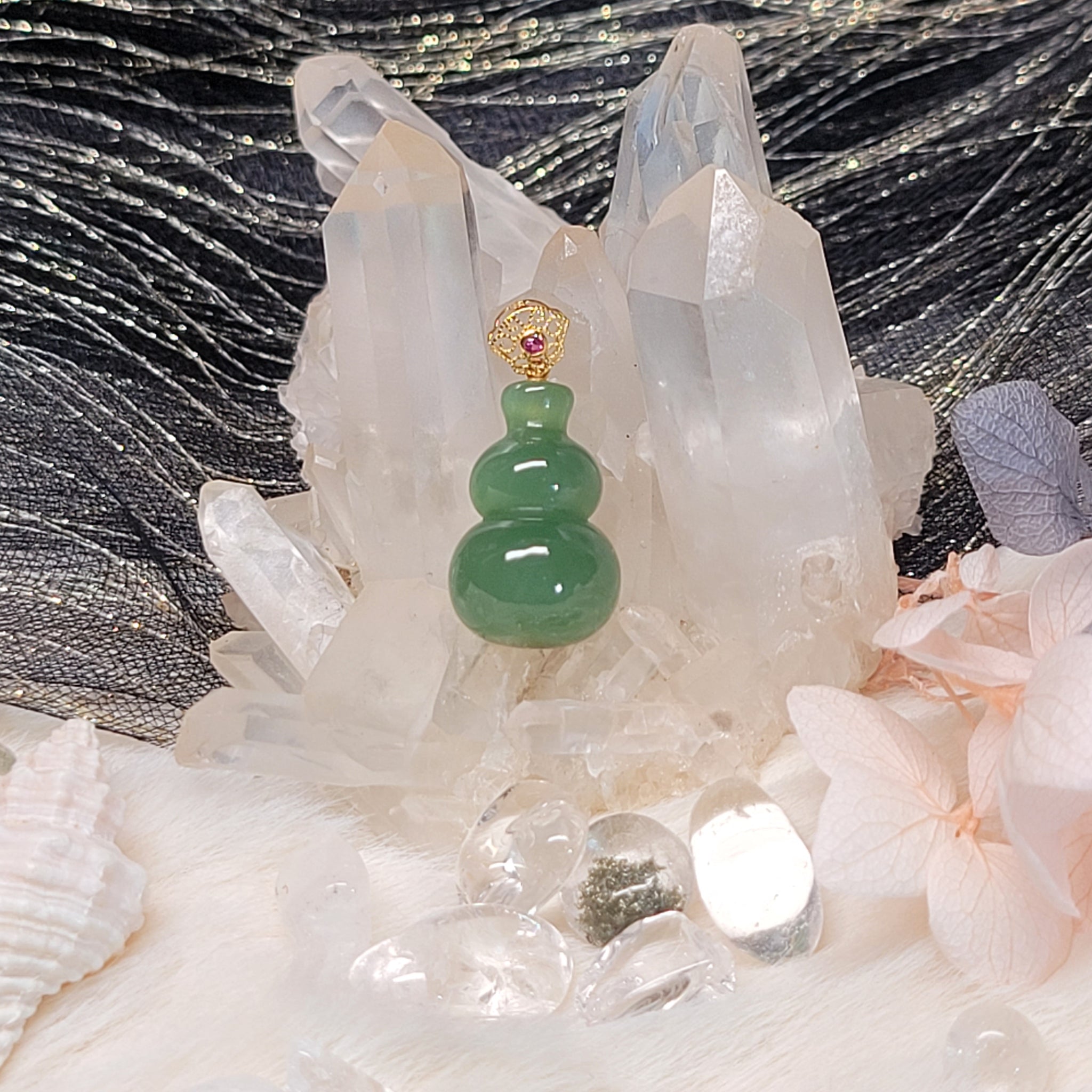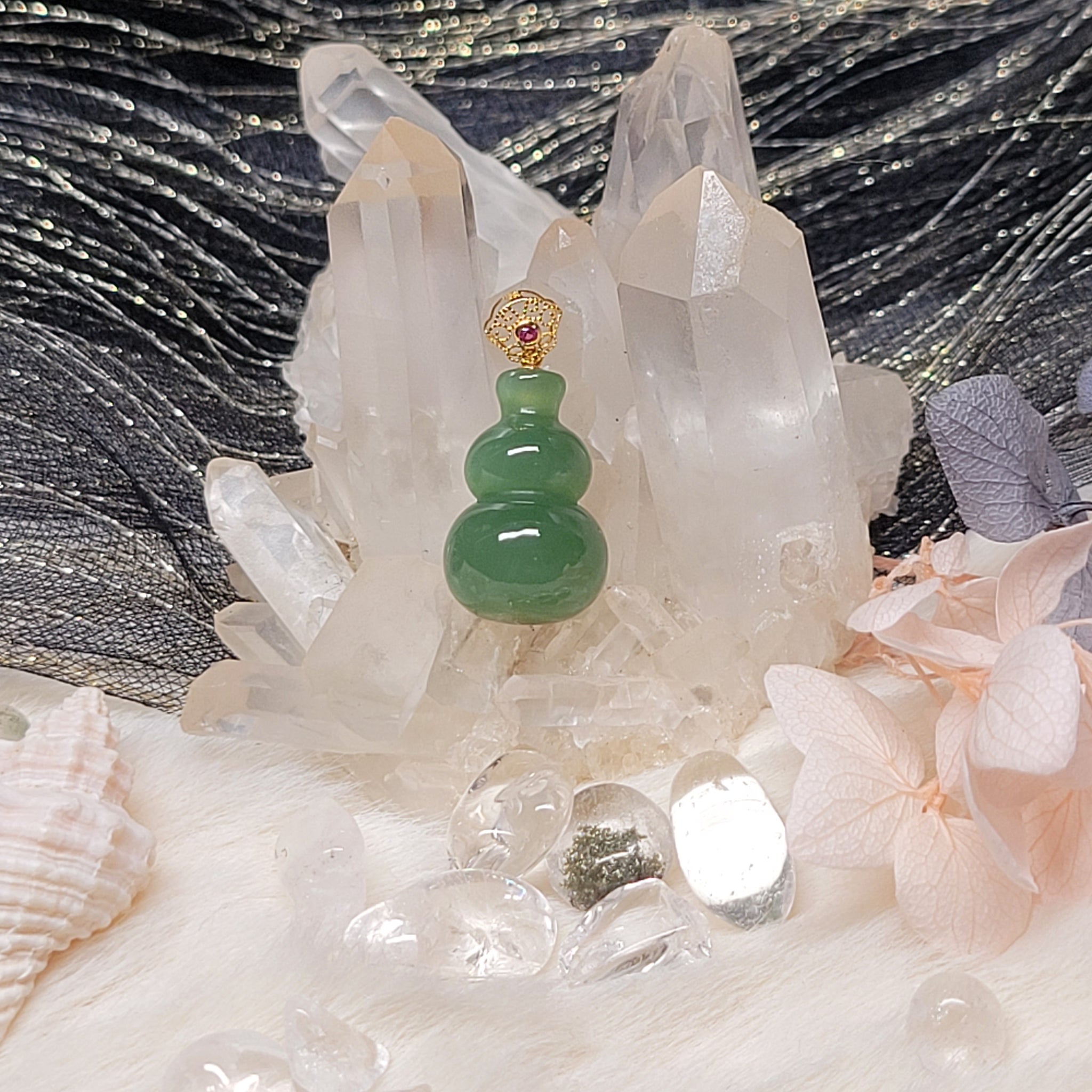 碧玉和田玉葫蘆造型18k扣頭吊墜
