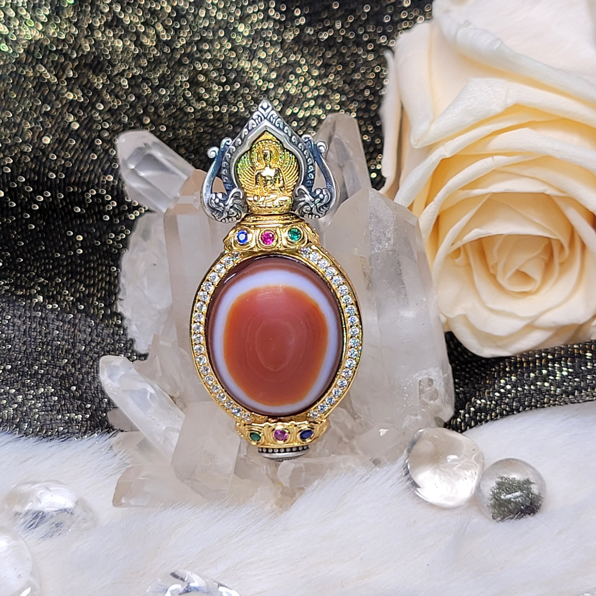 1059 紅肉羊板眼天眼天珠藥師佛吊墜