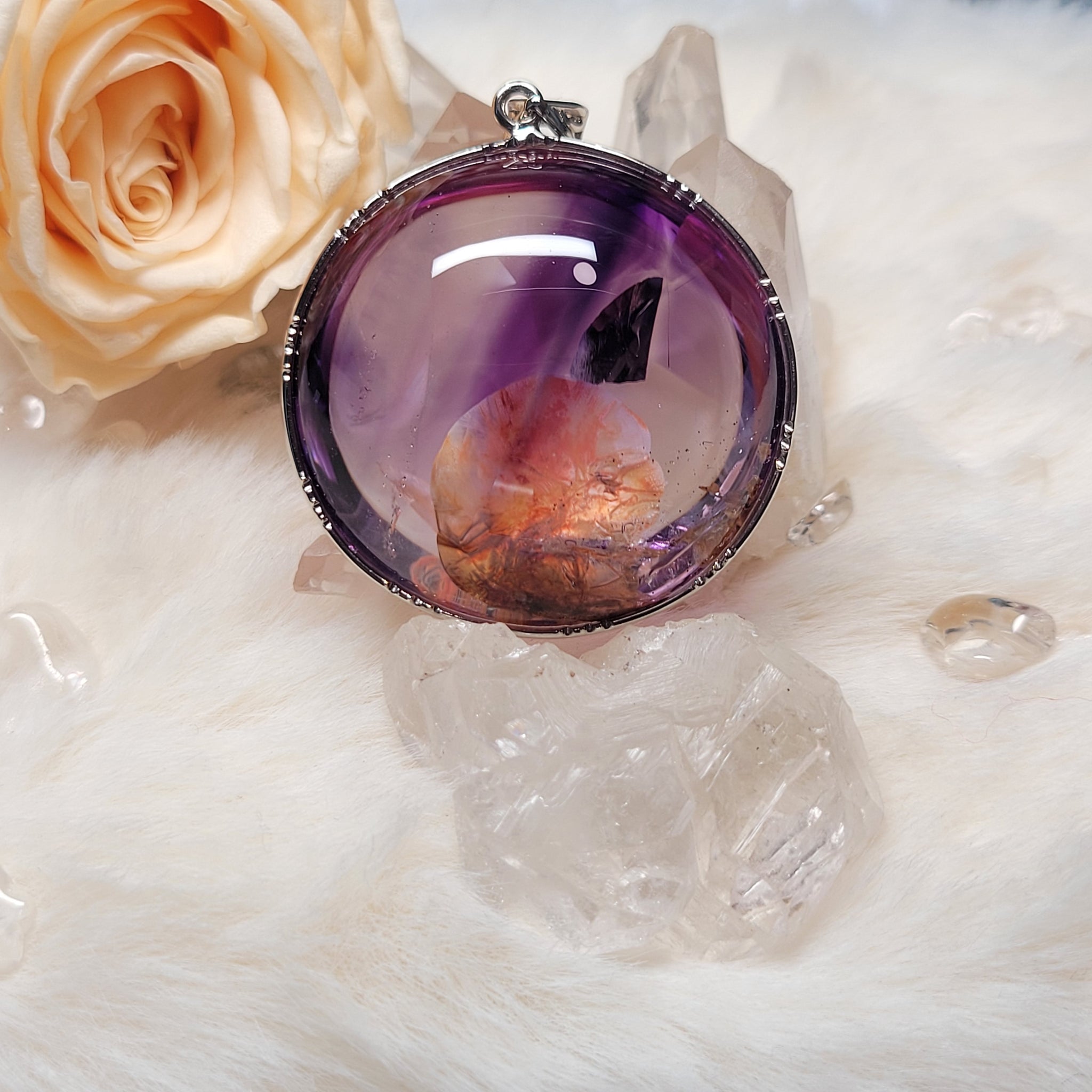 0792 紫水晶金雲母共生礦S925純銀吊墜