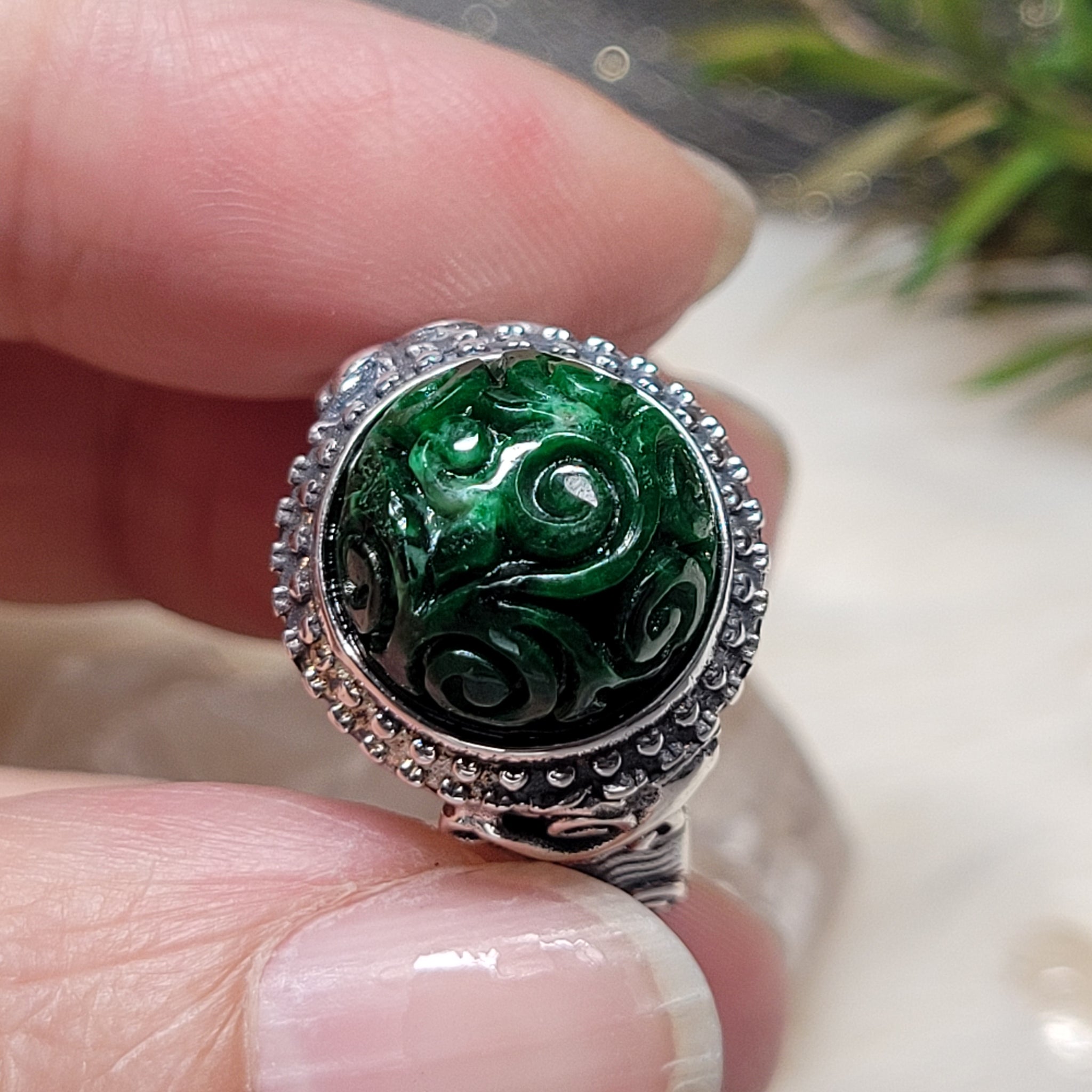 0836 花青翡翠S925純銀戒指(不限指圍)