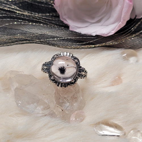 0544 黑銀肽發晶共生礦925銀戒指(不限指圍)