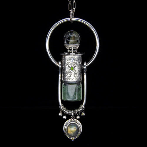 Fountain Gem Rollerball Necklace Series - Phantom and Labradorite on Floral Pattern