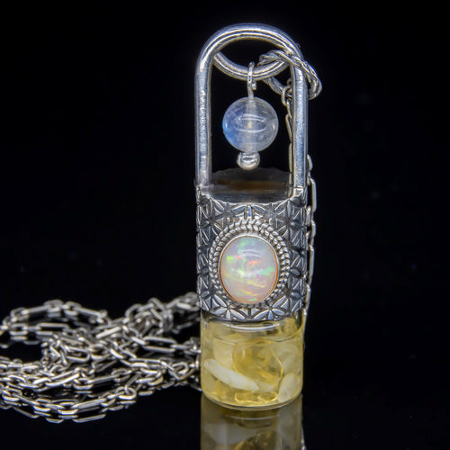 Fountain Gem Rollerball Necklace Series - Opal with Yellow Sapphire on Boho Pattern