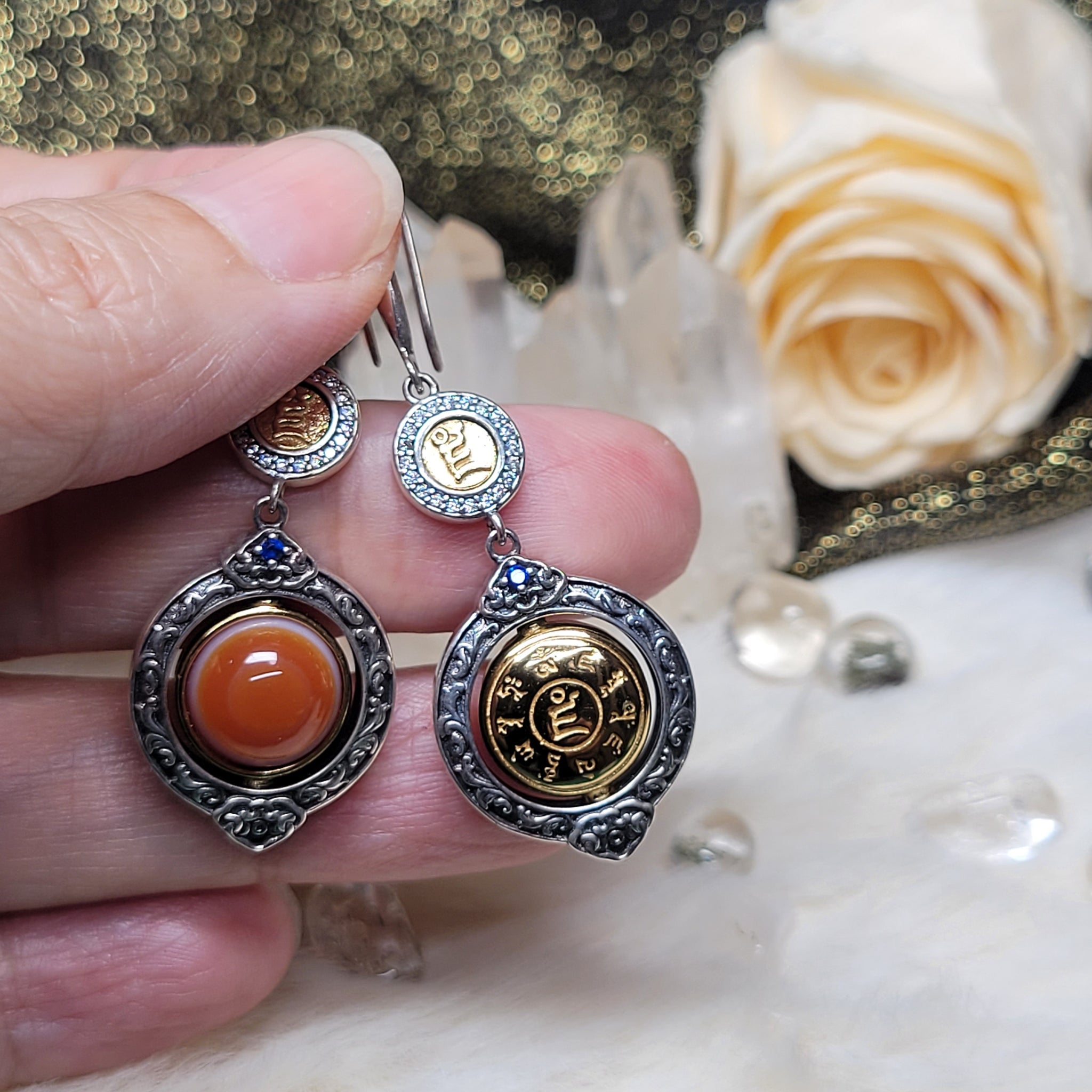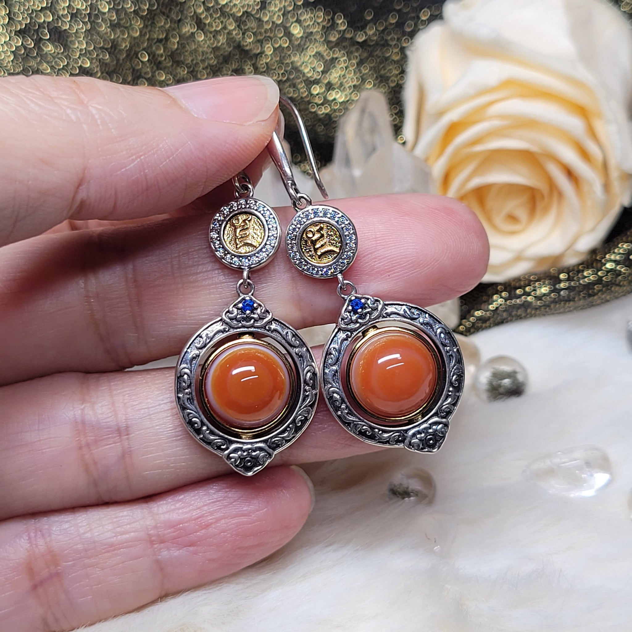 紅肉羊板眼天眼天珠耳環