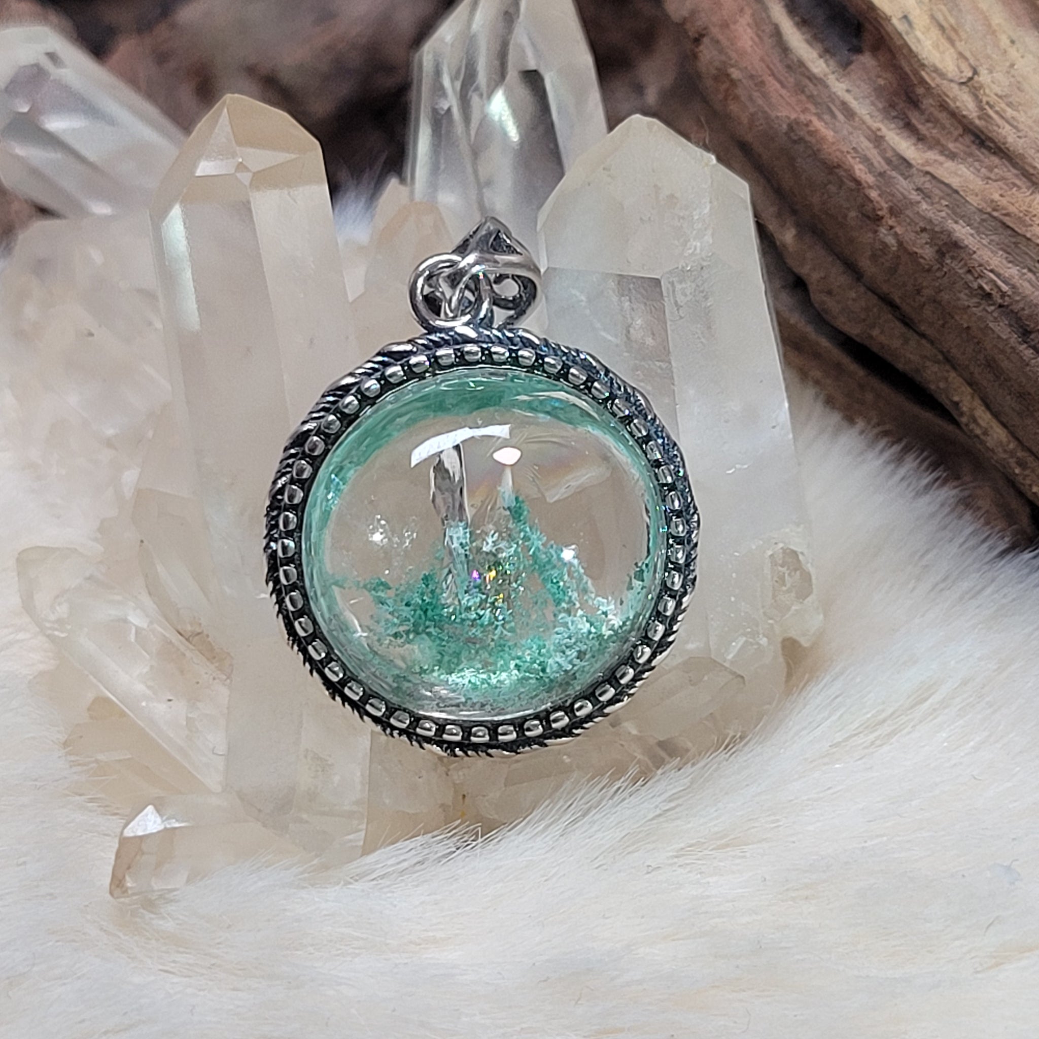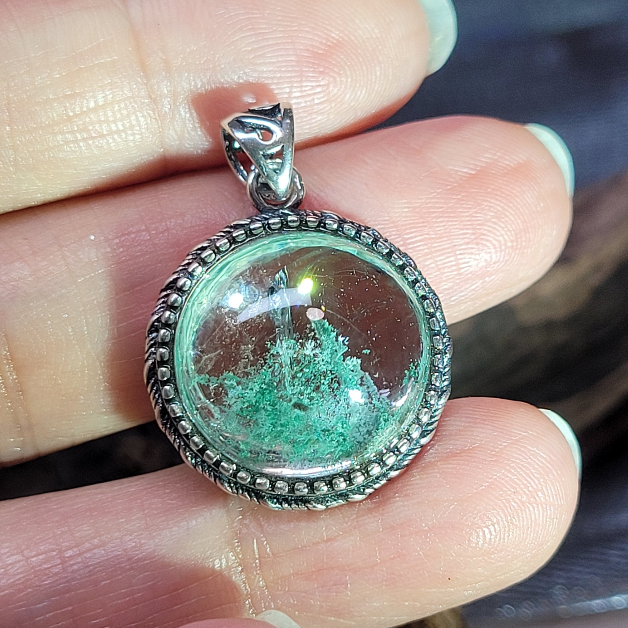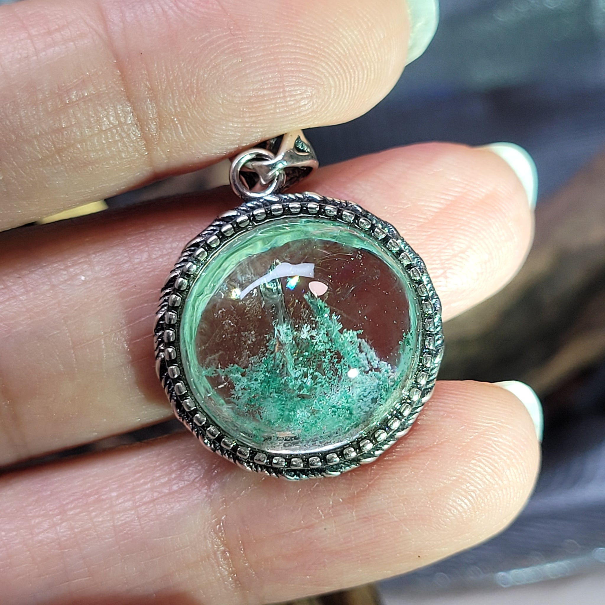 1274 青幽靈925銀包邊吊墜