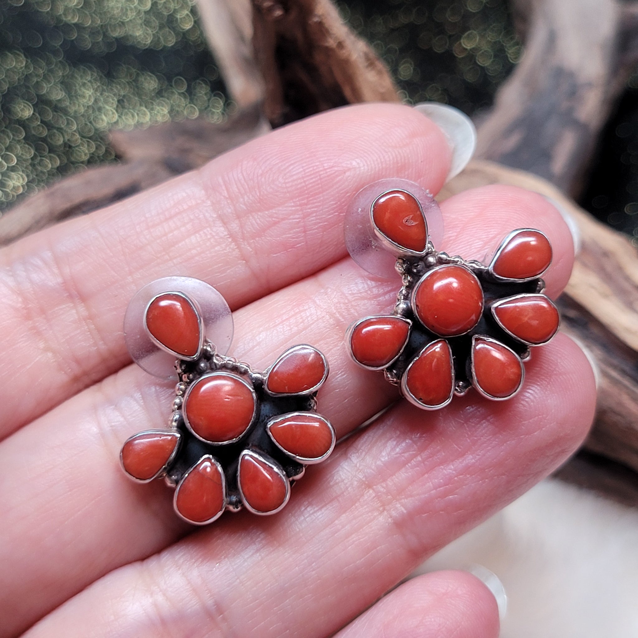 紅珊瑚925銀耳飾