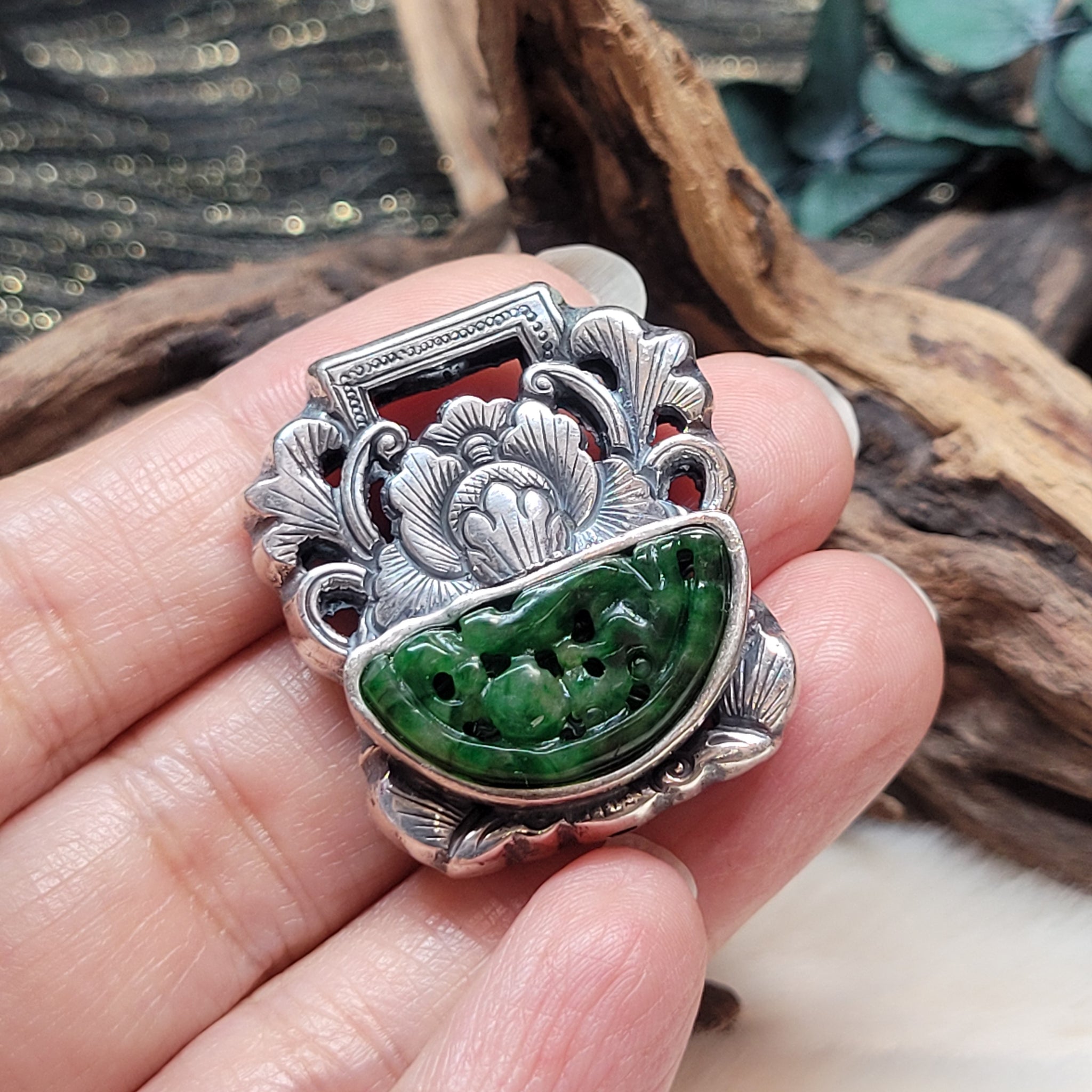 花青翡翠925銀吊墜