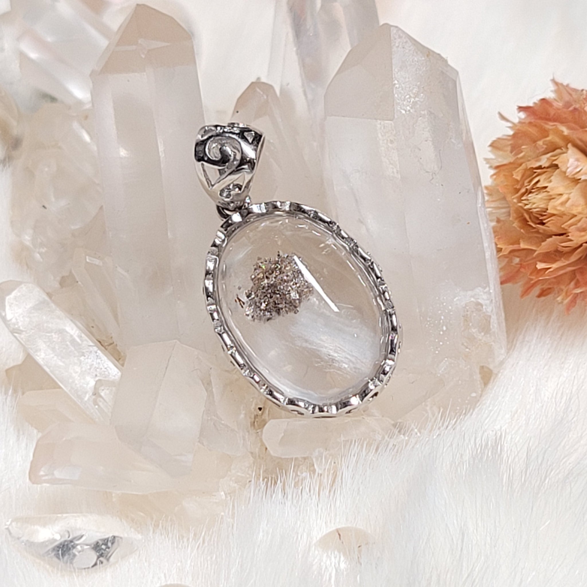0516 白幽靈銅礦共生S925純銀包邊吊墜
