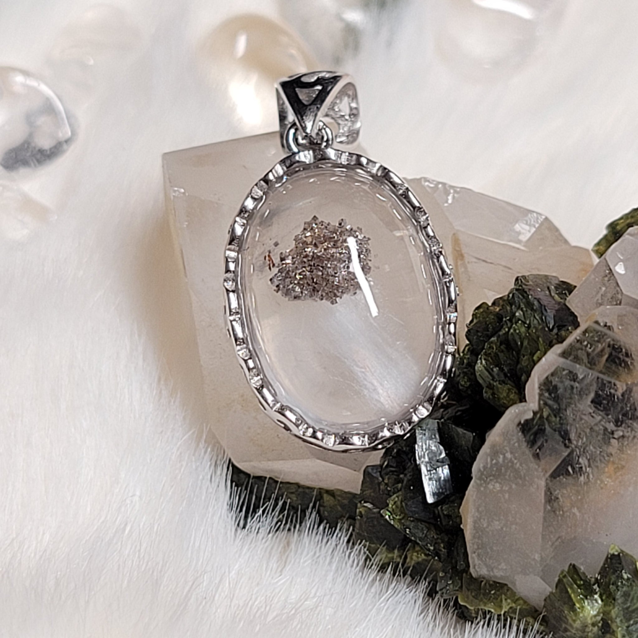 白幽靈銅礦共生S925純銀包邊吊墜