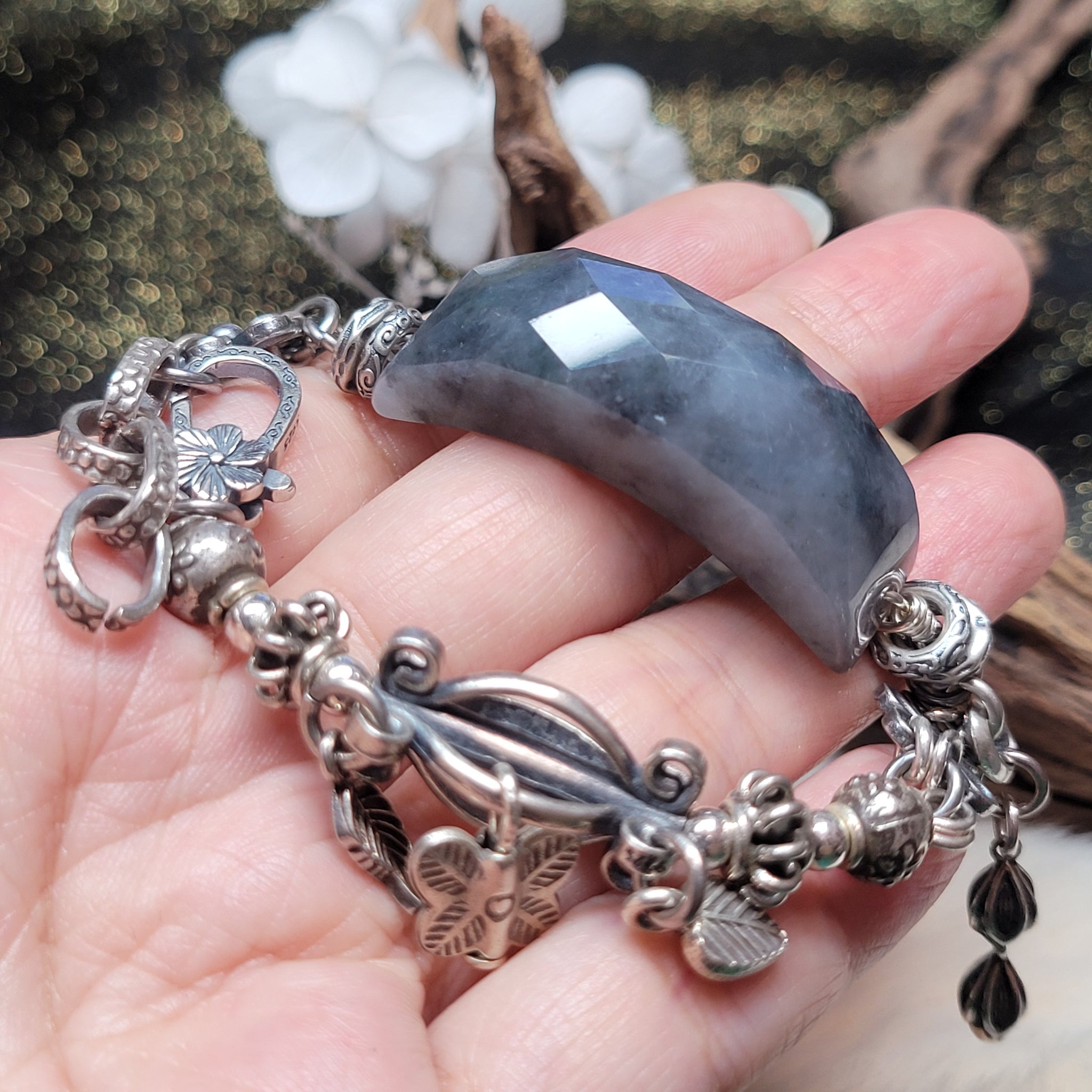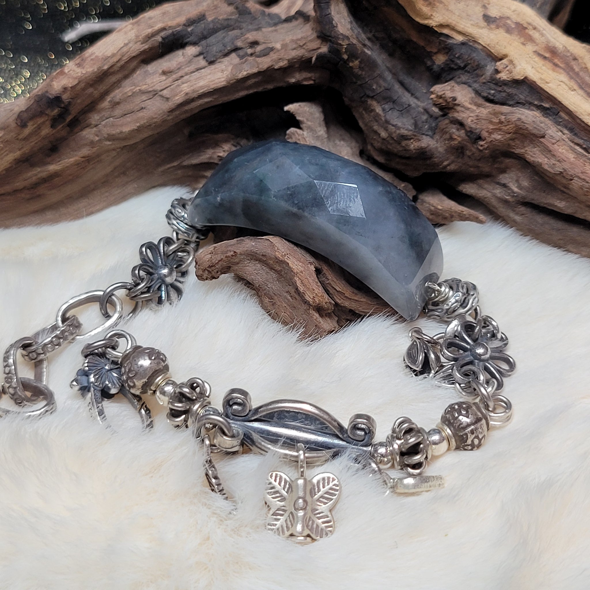 0624 緬甸A貨切面烏雞翡翠牌925銀手鏈