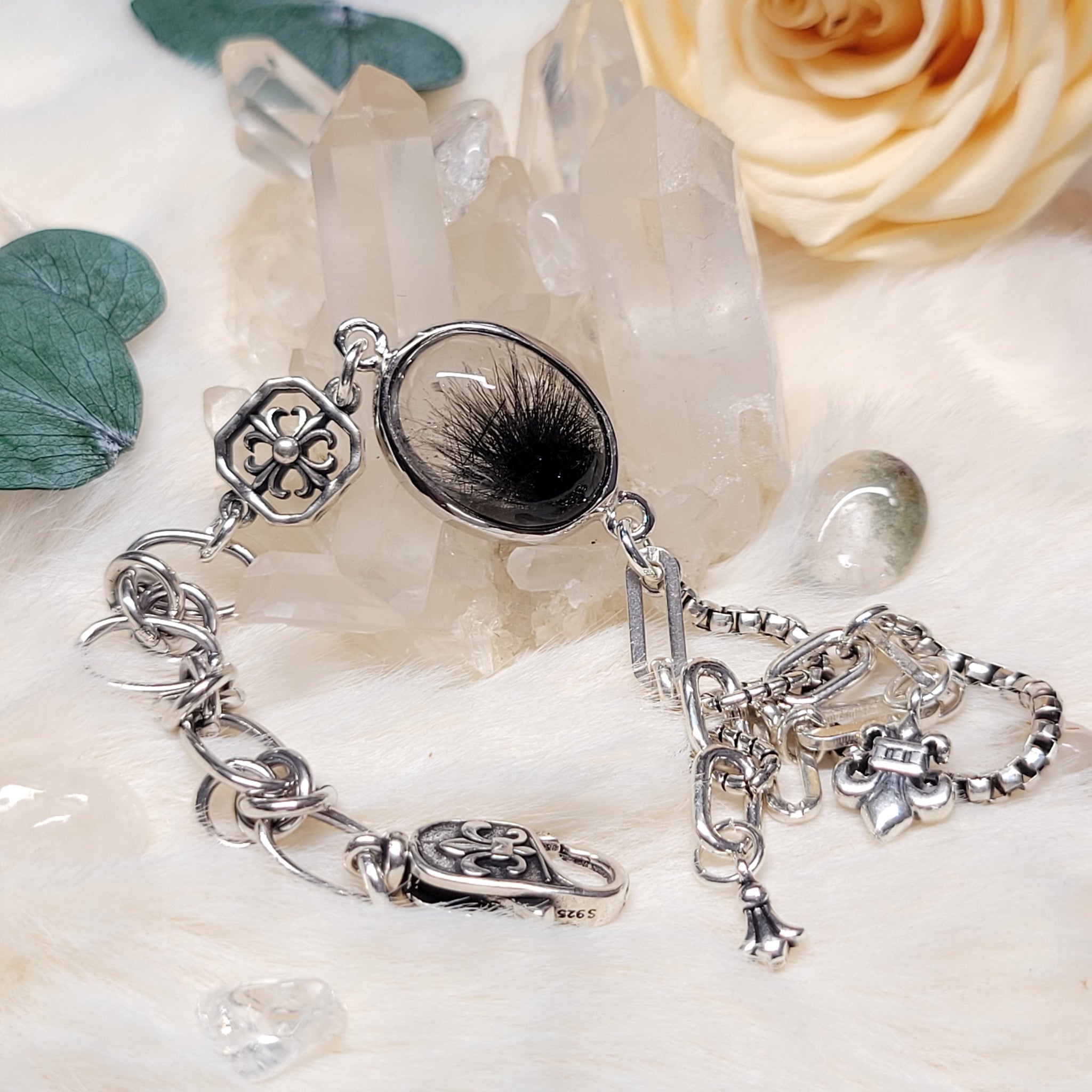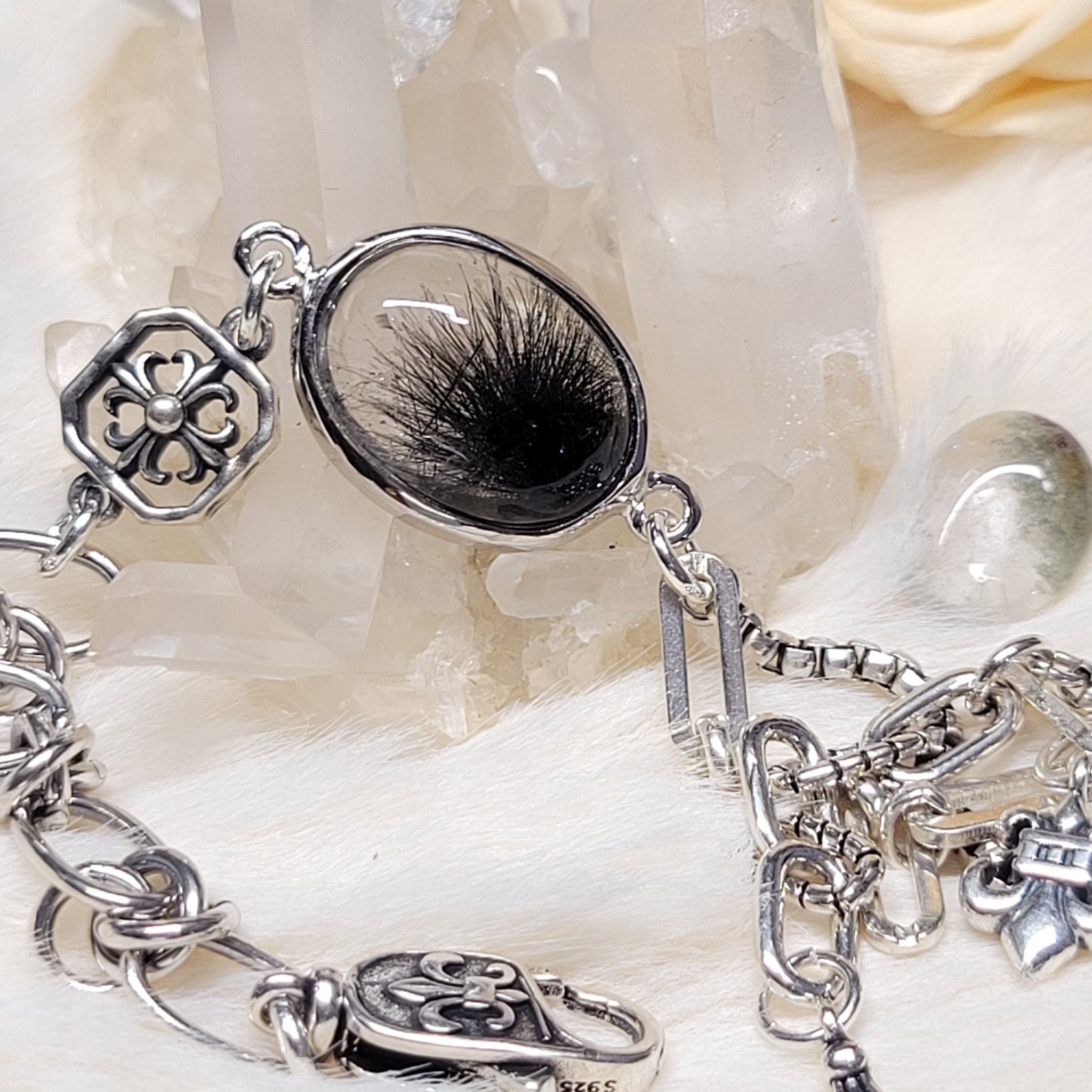 • Load image into Gallery viewer, 0646 黑髮晶S925純銀設計款手鏈
