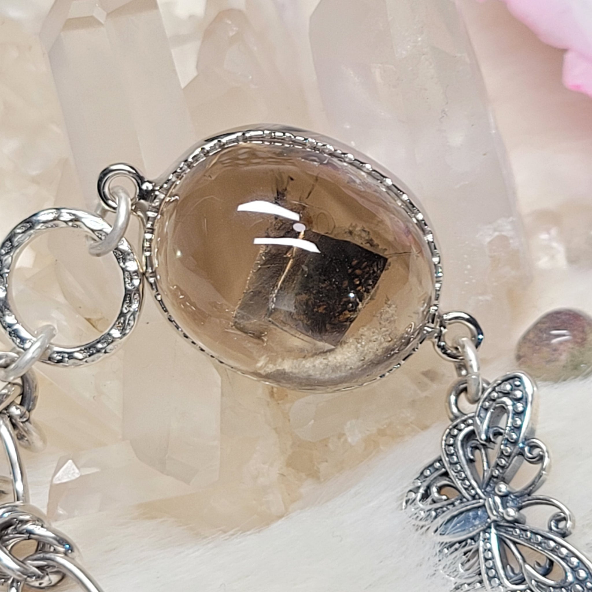 0678 茶晶黃銅礦S925純銀設計款手鏈