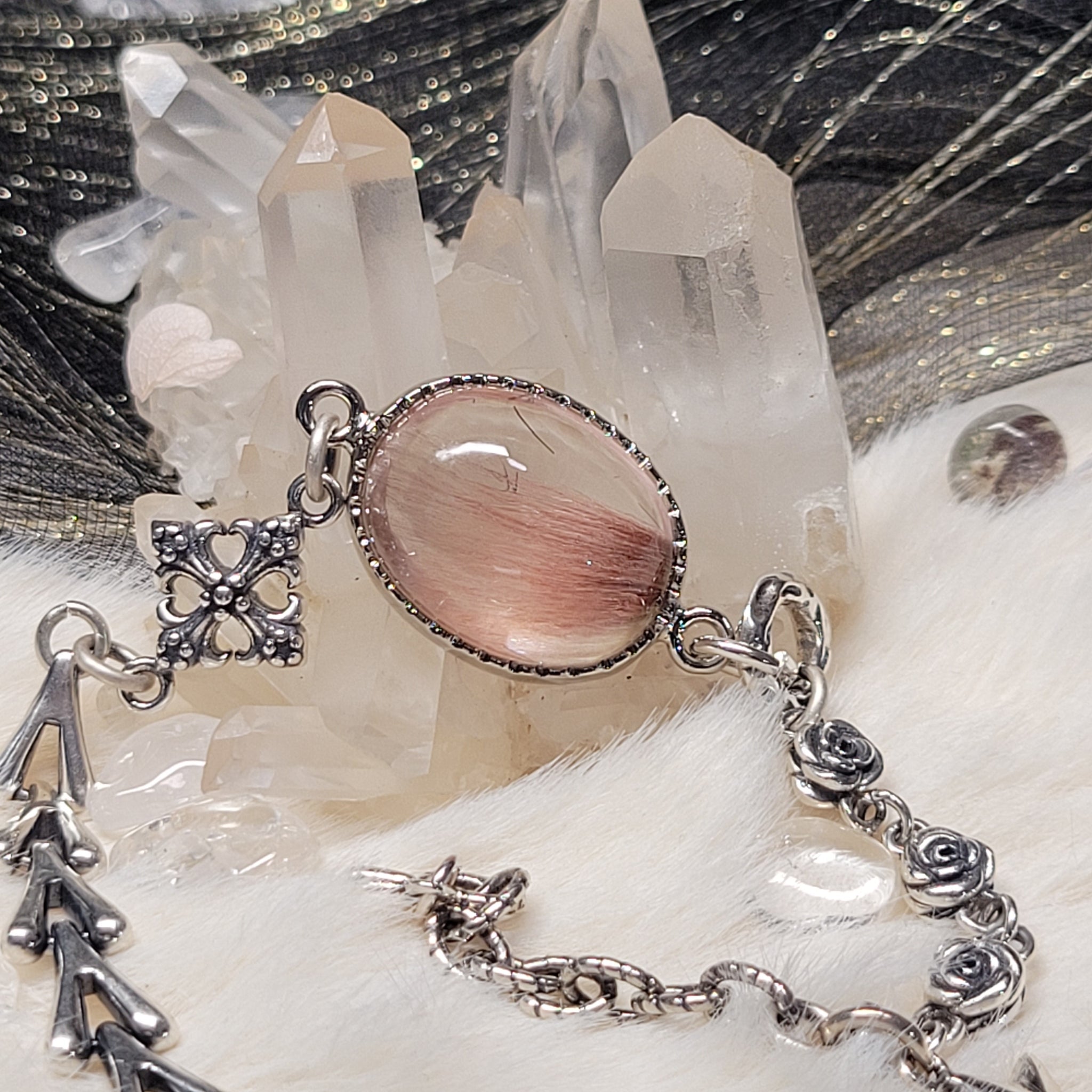 0699 粉兔毛波S925純銀設計款手鏈