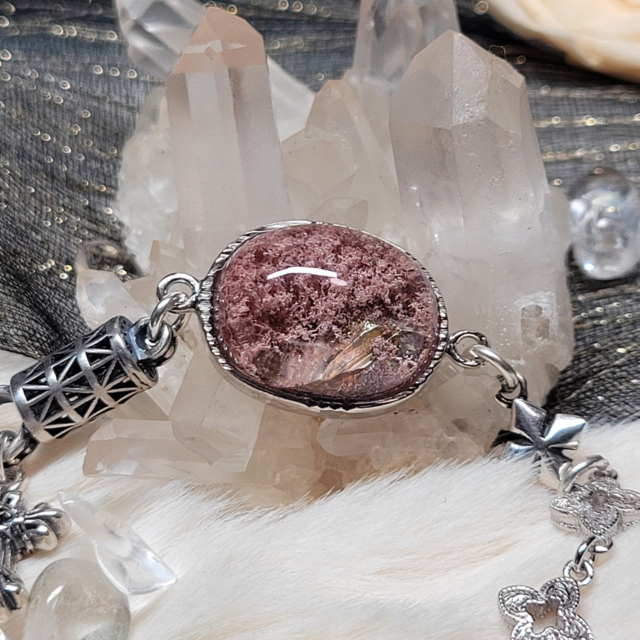 0753 粉幽灵晶中晶S925純銀設計款手鏈