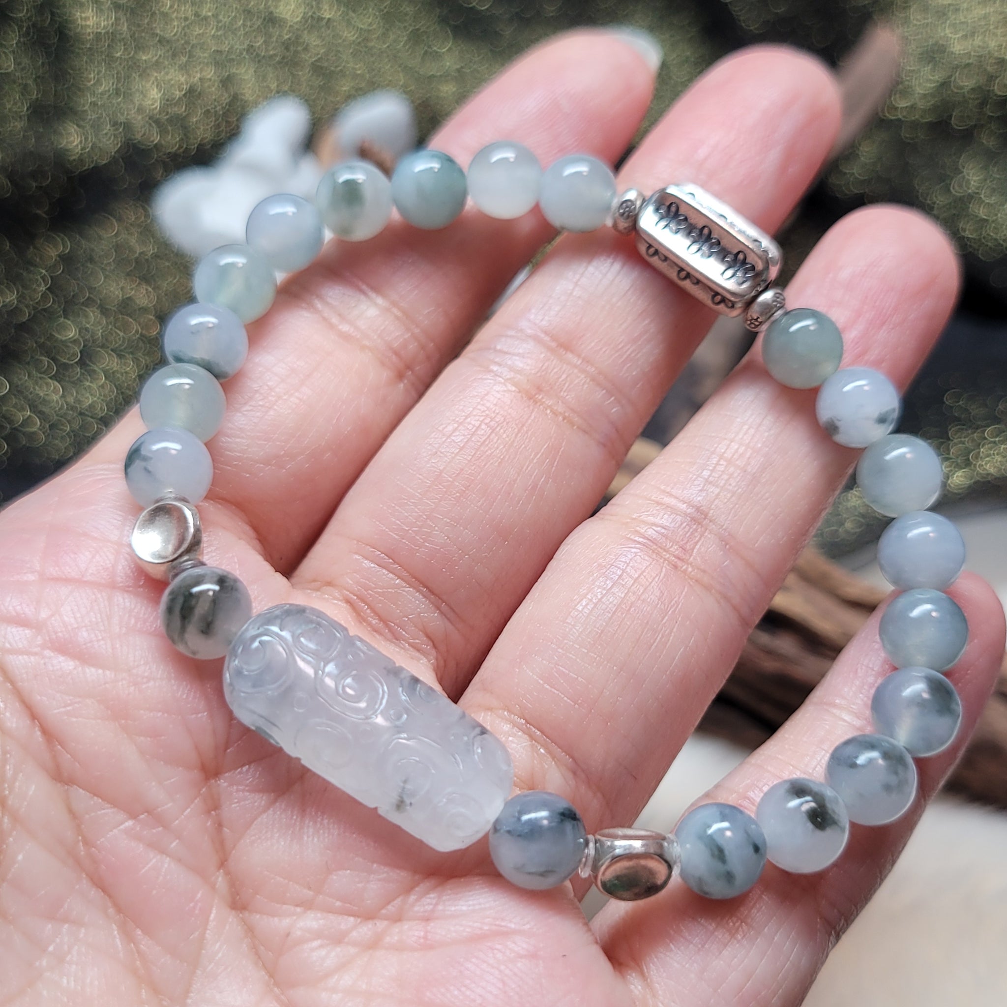 0088 天然A貨翡翠冰翡烏雞飄花手串