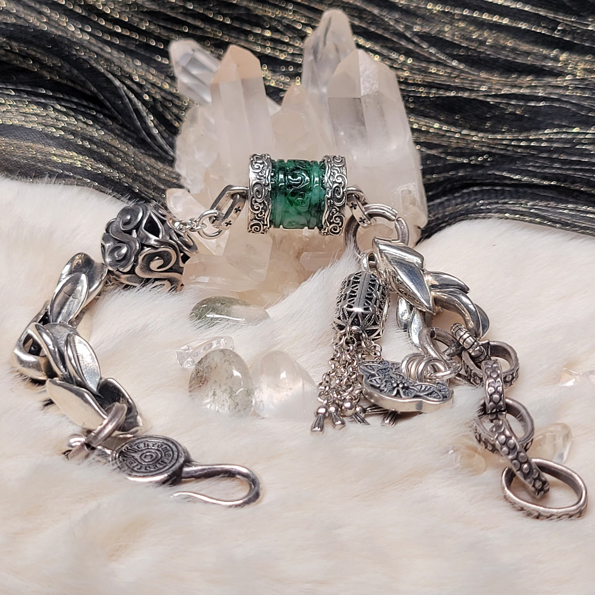 花青翡翠桶珠S925純銀設計款手鏈