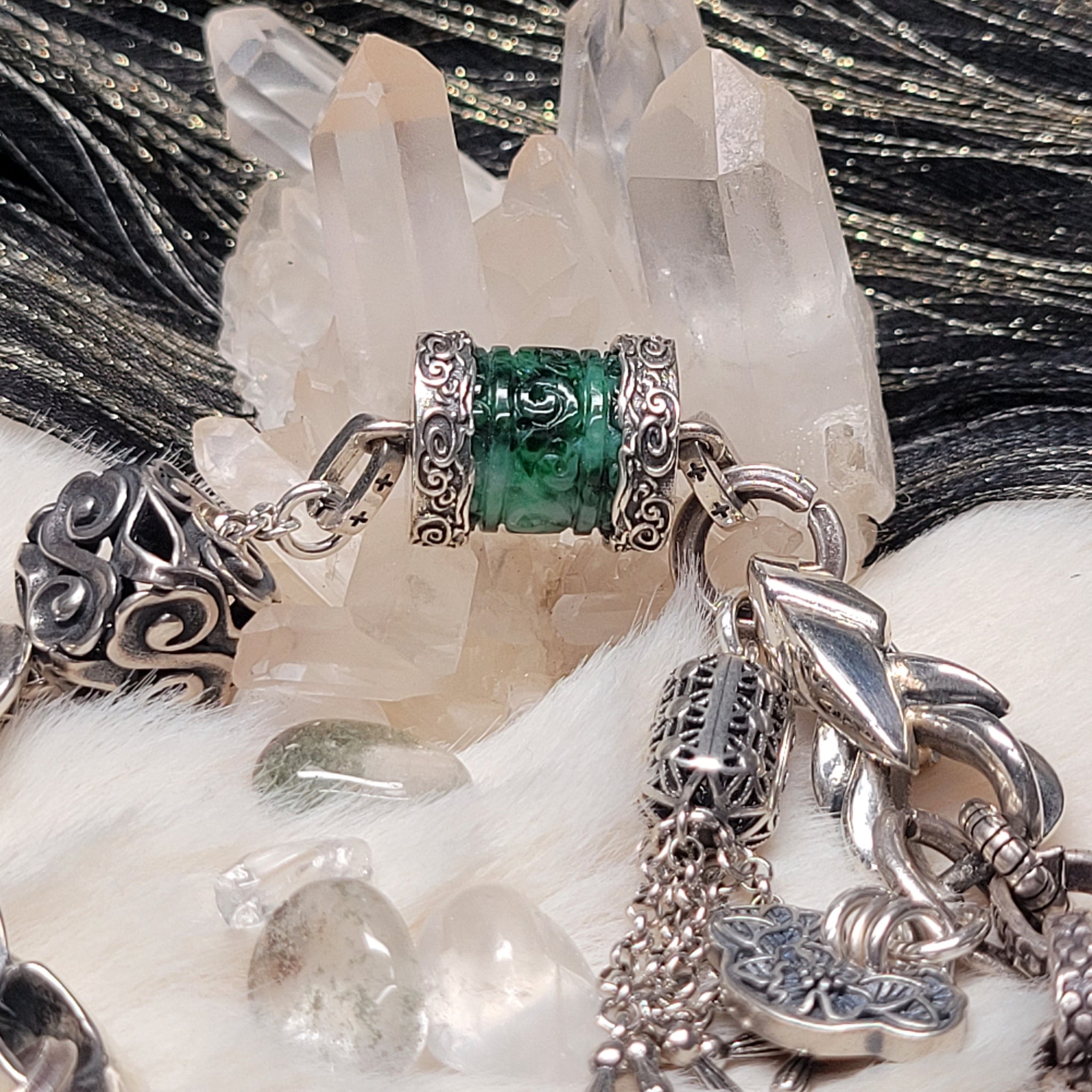 • Load image into Gallery viewer, 0935 花青翡翠桶珠S925純銀設計款手鏈